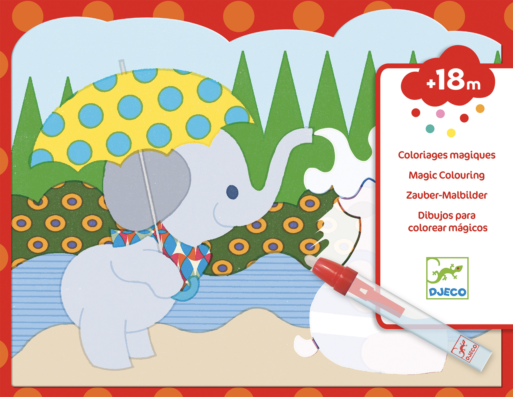 Radosne zabawy zwierzątek na 4 obrazkach o rozmiarze 21 x 26 cm ujawniają się dopiero po przeciągnięciu magicznym ołówkiem. Ołówek przed użyciem napełnia się wodą, która pozwala odkryć obrazki w wielobarwnych kolorach. Pięknie kolorowy obrazek pozostaje odkryty, dopóki cała naniesiona woda nie wyparuje. Po wyschnięciu obrazek znów pokrywa się białą, nieprzezroczystą warstwą i dzieci mogą znowu odkrywać. Zabawa bez końca zajmie i ucieszy dzieci podczas długich i krótkich podróży. Wszystko zapakowane w praktyczne etui z zapięciem, by nic nie zgubiło się w podróży, a dzieci mogły przez przezroczyste okienko obserwować stopniowo zmieniający się obrazek. Dla dzieci od 18 miesięcy. Zestaw zawiera 4 obrazki, magiczny ołówek.