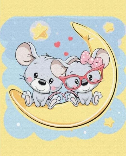 Malowanie po numerach - Myszki na księżycu 40x50cm