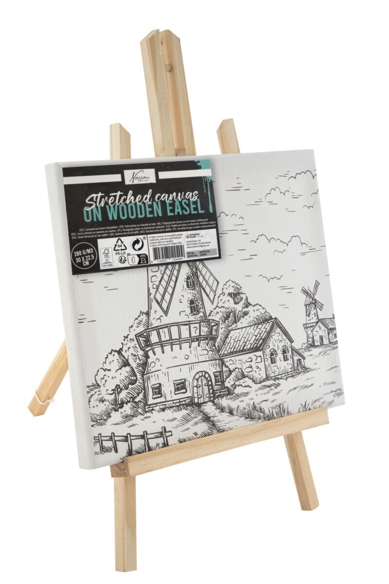 Malování na plátno 30x22,5 cm, dřevěný stojan - mlýn