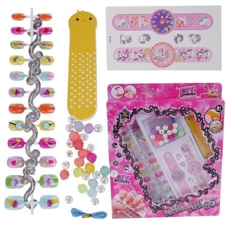 Ten zestaw urody to wspaniała i kreatywna rozrywka dla małej dziewczynki. Mała księżniczka będzie mogła samodzielnie przykleić naklejki na paznokcie lub twarz, ozdobić dłonie różnymi pierścionkami oraz wystylizować paznokcie za pomocą dołączonego delikatnego pilniczka.Zestaw zawiera: sztuczne...