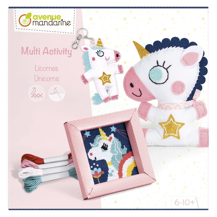 Kreatywny zestaw Jednorożec zawiera trzy różne projekty tekstylne z motywem ulubionego jednorożca. Dzieci będą mogły szyć pluszową zabawkę, wyszywać obrazek oraz wykonać brelok na klucze. Każda aktywność jest wyposażona w wycięte części z filcu, akcesoria oraz przejrzyste instrukcje, które ułatwią młodszym i starszym twórcom każdą fazę pracy.