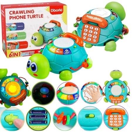 Żółw z telefonem to wielofunkcyjna zabawka. Wszystkie funkcje są dostosowane do wczesnego etapu rozwoju dziecka. Mały żółw pomoże dziecku rozwinąć swoje pierwsze umiejętności i zapewni mnóstwo dobrej zabawy.Na skorupie żółwia znajduje się telefon analogowy. Taki telefon jest świetnym sposobem na...