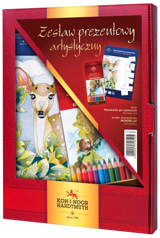 W skład zestawu wchodzą: Malowanie po numerach oraz zestaw kredek akwarelowych Mondeluz 24 kolory.- Zestaw prezentowy artystyczny spakowany w ozdobne, kartonowe pudełko przeczytaj całość