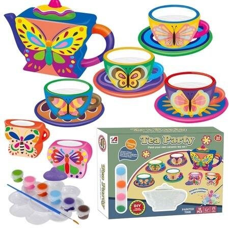 Zestaw do herbaty do malowania to zabawa, dzięki której każdy mały artysta może stworzyć własne, niepowtarzalne dzieło.Zestaw zawiera wszystko, co potrzebne, aby stworzyć piękny zestaw do herbaty. Czajnik, filiżanki, spodki, dzbanek do mleka, cukiernica - wszystkie te elementy można udekorować...
