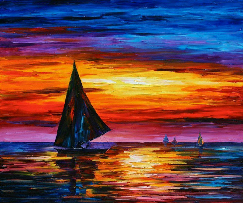 Malowanie po numerach Żaglówki na tle zachodu słońca 40x50cm 1008892