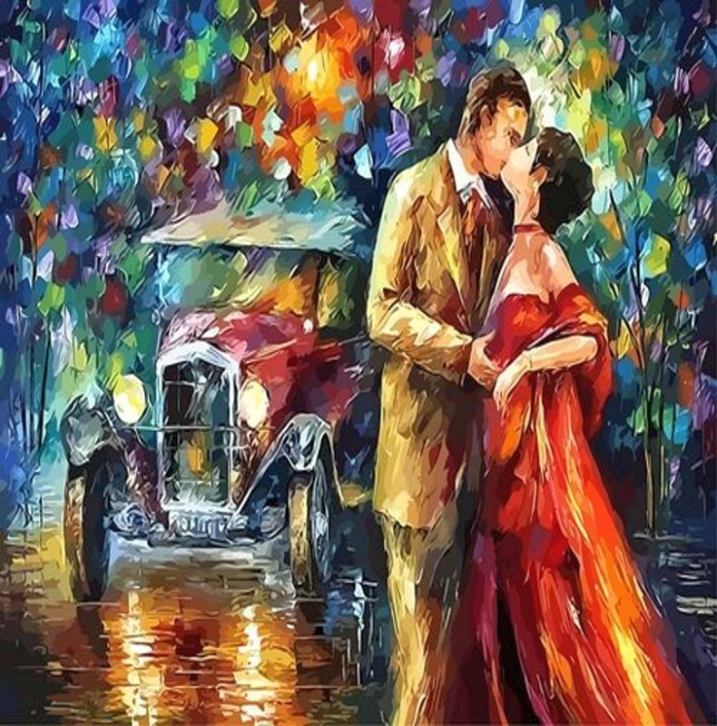 Malowanie po numerach Kobieta i mężczyzna auto retro 40x50cm 1008971