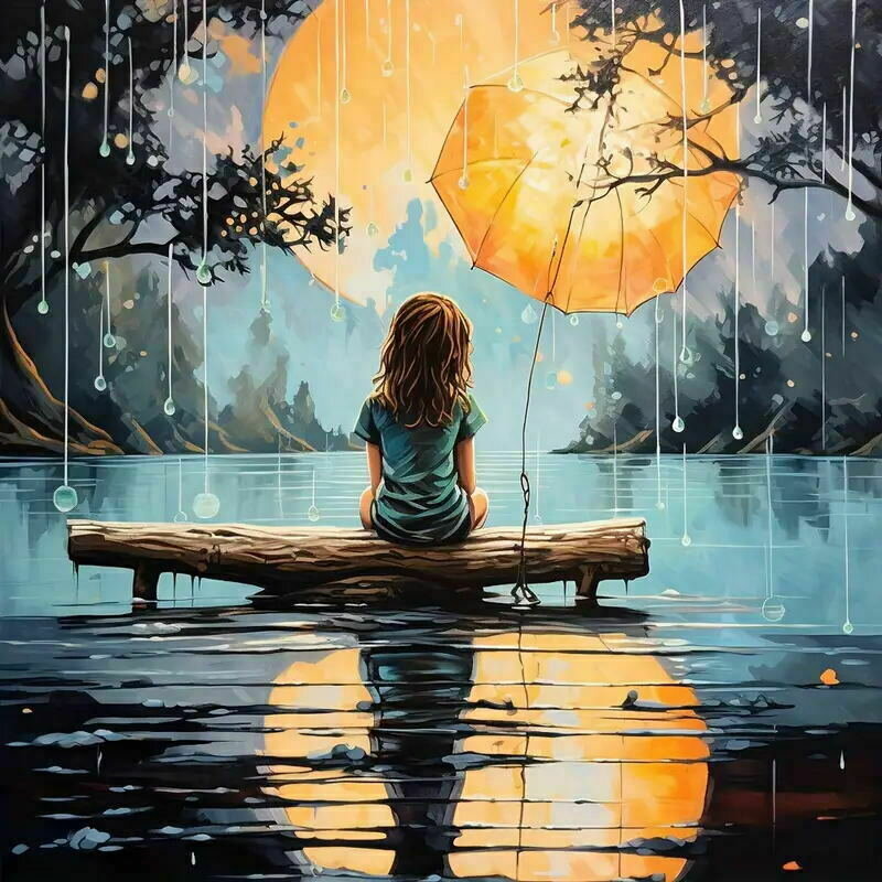Diamentowa mozaika Dziecko, dziewczynka w deszczu nad jeziorem 30x40cm 2000298