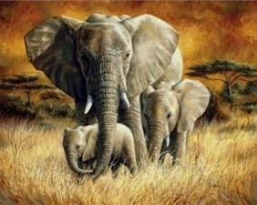 Malowanie po numerach Słoń z rodziną 40x50cm 5534