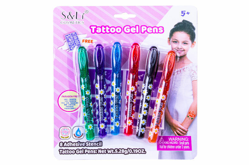 Pisaki żelowe do rysowania tatuaży 6 sztuk, w zestawie dołączono szablon.Wymiary opakowania: 21x22x2cm.Wiek: 5+ przeczytaj całość