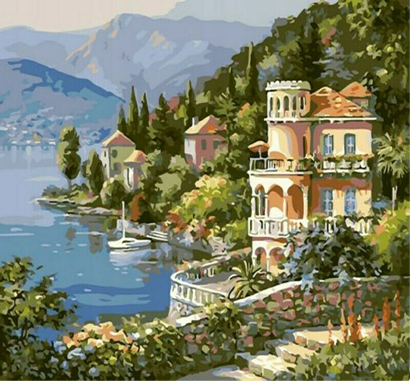 Malowanie po numerach Willa nad jeziorem 50x40cm 1008869