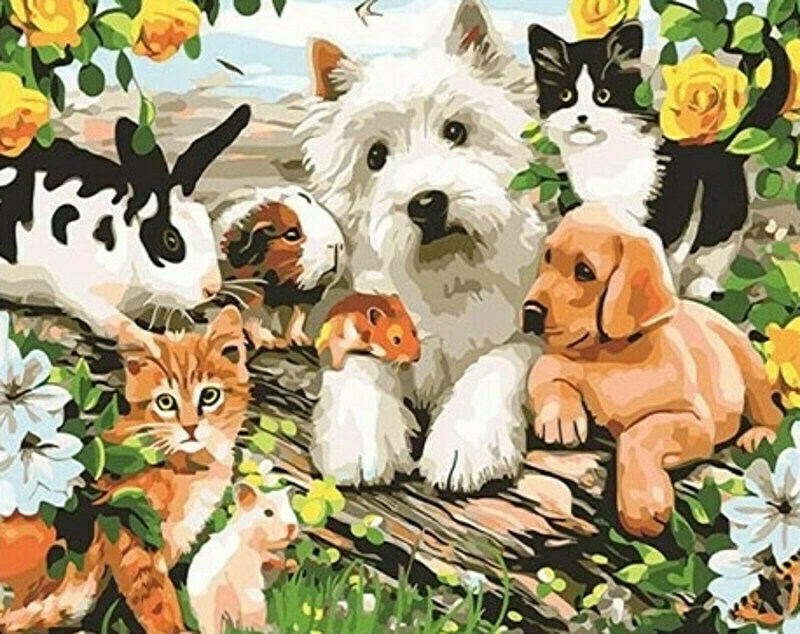 Malowanie po numerach Zwierzęta w ogrodzie 20x20cm rama 1008249