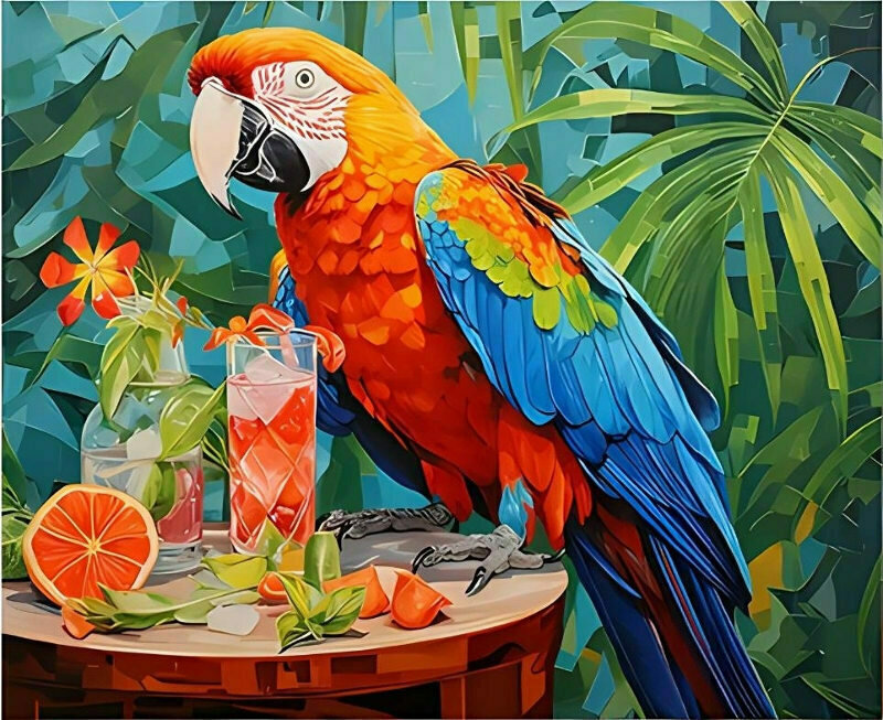Malowanie po numerach Papuga Ara na stole z napojami 50x40cm 2001346