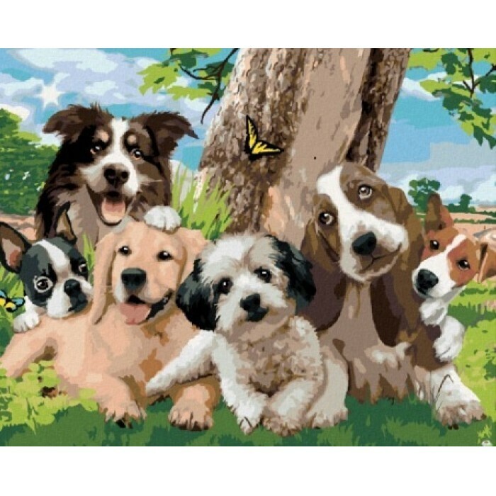 Malowanie po numerach Pieski pod drzewem 40x50cm 6376