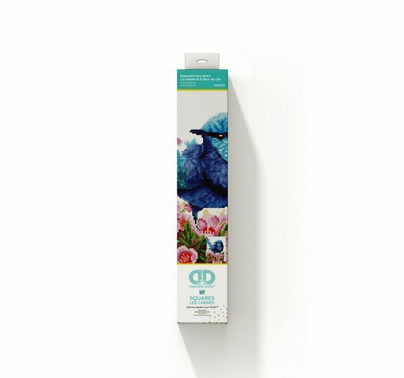 Haft diamentowy Diamond Dotz Diamentowa mozaika Niebieski ptaszek w kwiatach Splendid Fairy Wren 35x43cm DQ10023