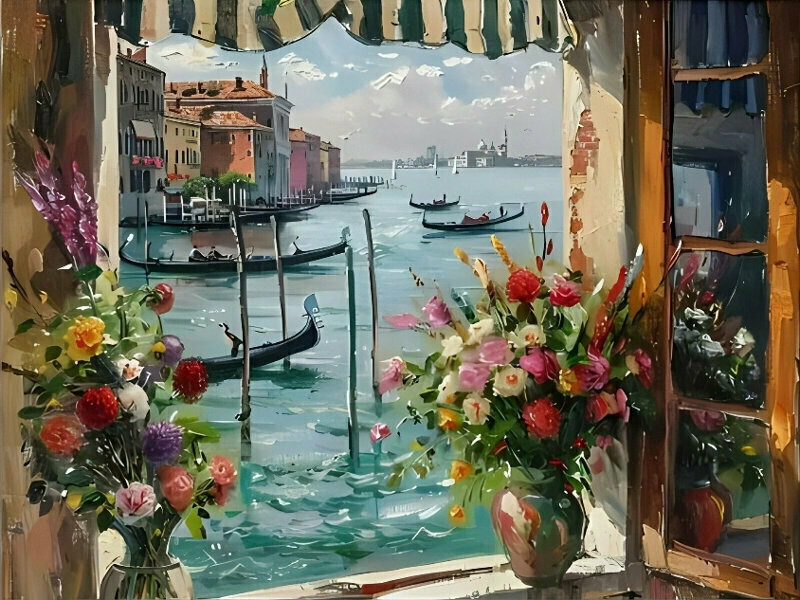 Malowanie po numerach Okno z widokiem na Wenecką przystań 50x40cm 2001340
