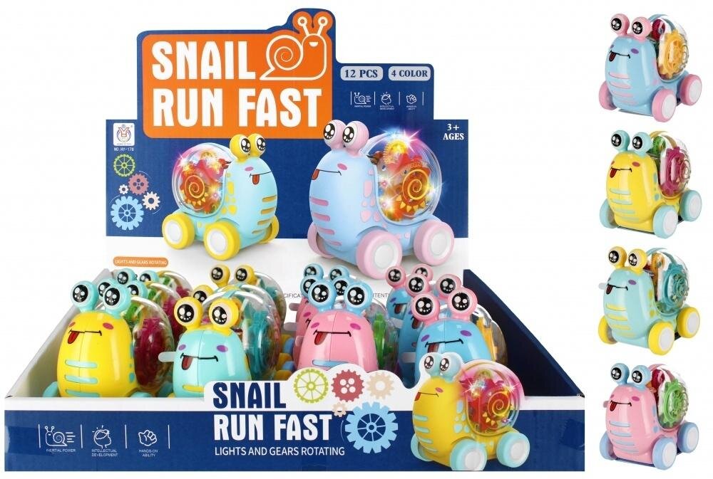 Zabawka posiada napęd- po naciągnięciu ślimak jedzie do przodu, posiada efekty świetlne. Fajna propozycja dla malucha lubiącego wesołą zabawę.Zawartość zestawu: kolorowy Ślimak.Wymaga zasilania bateriami 3x AG13LR44- załączone do zestawu.Ślimak występuje w czterech kolorach, produkt wysyłany... przeczytaj całość
