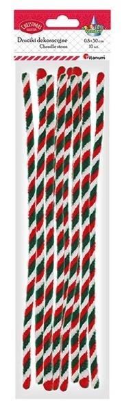 Druciki trójkolorowe. Kolory: czerwono-zielono-białe. Długość: 30 cm, szerokość: 0,8 cm. 10 sztuk. przeczytaj całość