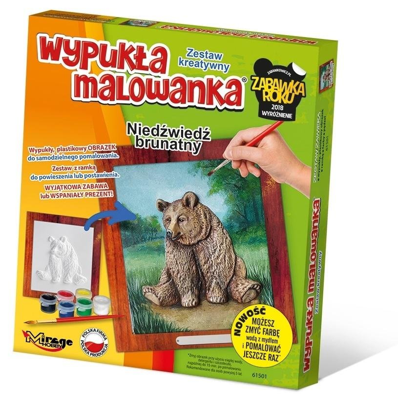 Wypukła Malowanka od Mirage Hobby to Zestaw Kreatywny do malowania dla osób powyżej 5. roku życia.Zestaw zawiera wypukły, plastikowy, kształtny obrazek 3D, farbki akrylowe, pędzelek oraz ramkę z kartonu do postawienia lub powieszenia.Zmyj obrazek przy użyciu ciepłej wody, mydła i szczoteczki,...