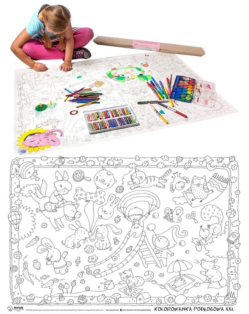 Zabawka roku 2013.Kolorowanki Podłogowe w rozmiarze XXL o wymiarach 120cm x 80cm - ogromna powierzchnia do kolorowania kredkami, flamastrami i farbami. Wzmocniony spód arkusza zabezpiecza przed przesiąkaniem farb.Kolorowanka wykonana jest z grubego kartonu (podobnego do brystolu), który można bez...
