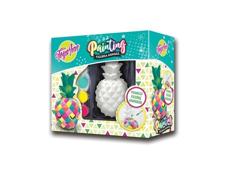 Zestaw zawiera figurkę ananasa do malowania, 5 farbek, pędzelek i dwie tacki do mieszania farb. Produkt przeznaczony dla dzieci w wieku 6+. przeczytaj całość