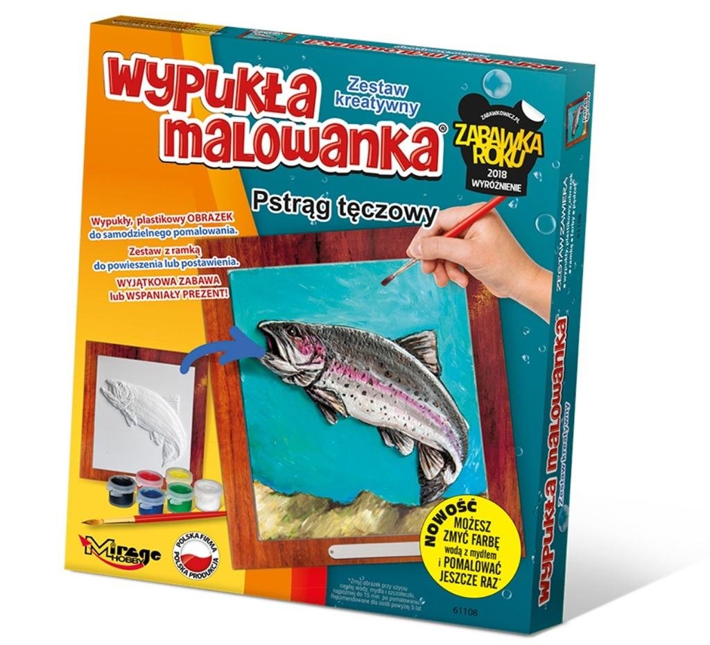 Wypukła Malowanka od Mirage Hobby to Zestaw Kreatywny dla osób powyżej 5. roku życia. Zestaw zawiera wypukły, plastikowy, kształtny obrazek, farbki akrylowe, pędzelek oraz ramkę z kartonu do postawienia lub powieszenia. Zmyj obrazek przy użyciu ciepłej wody, mydła i szczoteczki, najpóźniej do 15...
