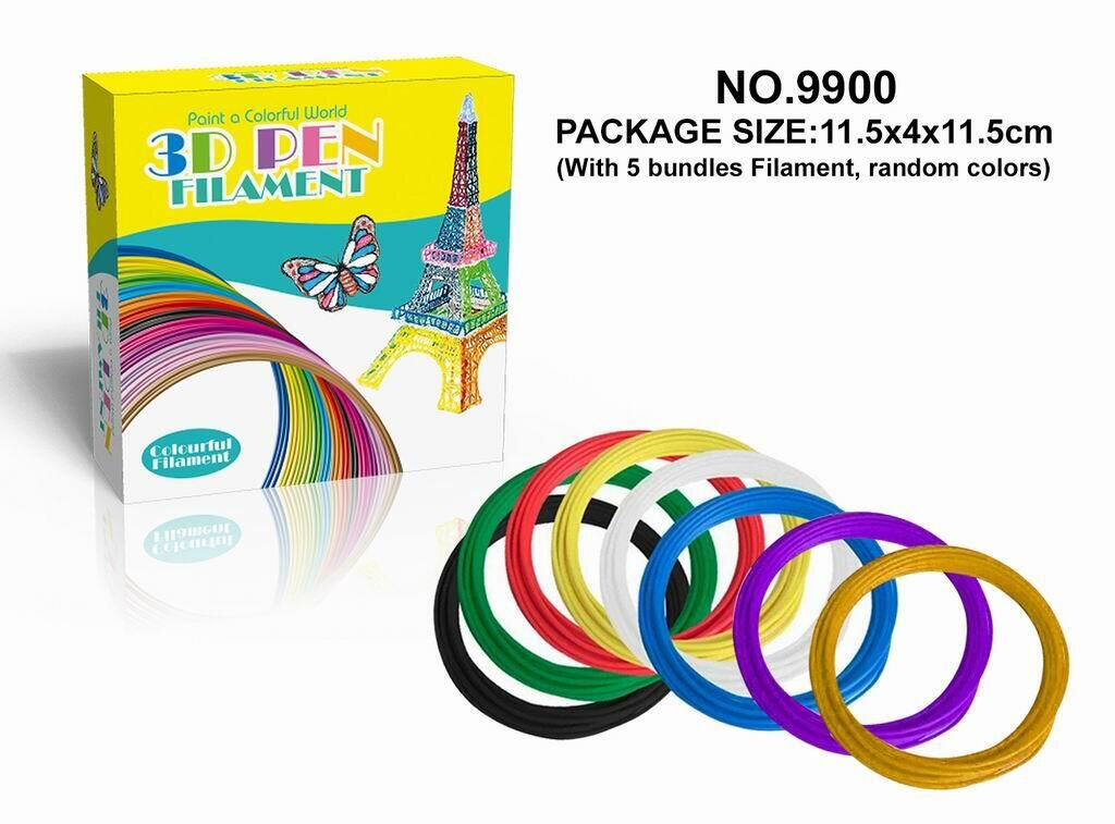Zestaw pięciu specjalnych filamentów o grubości 1,75 mm do długopisów 3D. Filament jest rozgrzewany wewnątrz długopisu 3D i wychodzi z jego dyszy w formie plastycznej, zastygając po wysunięciu. Charakteryzuje się on dużą wytrzymałością.Cechy produktu:- Średnica filamentu: 1,75mm.- Temperatura...