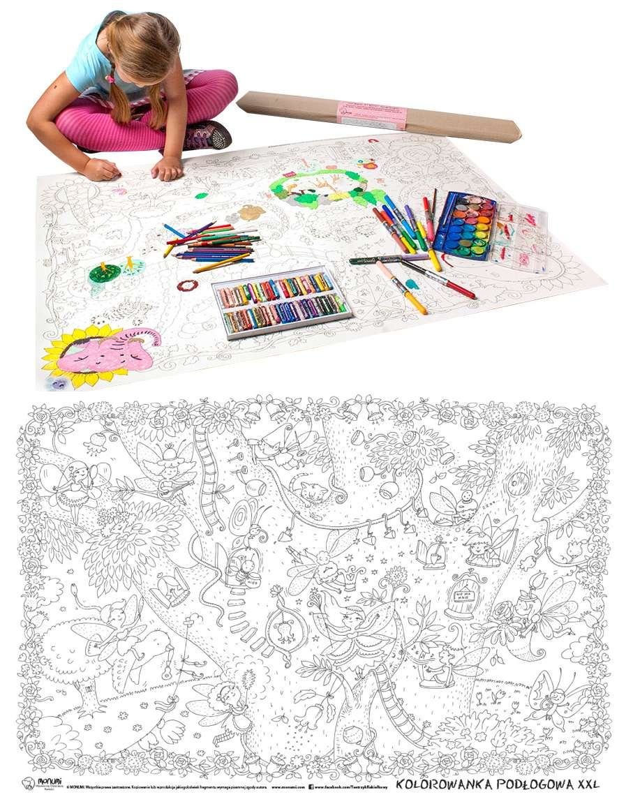 Kolorowanki Podłogowe w rozmiarze XXL o wymiarach 120cm x 80cm - ogromna powierzchnia do kolorowania kredkami, flamastrami i farbami. Wzmocniony spód arkusza zabezpiecza przed przesiąkaniem farb. Kolorowanka wykonana jest z grubego kartonu (podobnego do brystolu), który można bez końca rozkładać...