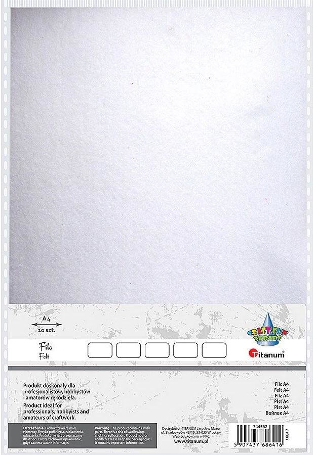 Filc dekoracyjny. Format: A4. Grubość: 2 mm, gramatura: 200 g. Kolor: biały. przeczytaj całość