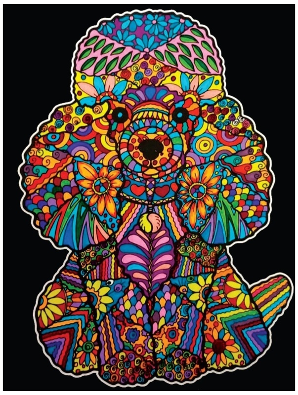 Pudel - kolorowanka z welwetowymi w dotyku konturami (pokrytymi czarnym welurem). Wypukłe linie ułatwiają nie wychodzenie za linie, a na głębokiej matowej czerni nie widać drobnych potknięć przy kolorowaniu. Welwet nałożony jest na papier przyklejony do sztywnej tektury, dzięki czemu obraz nie...