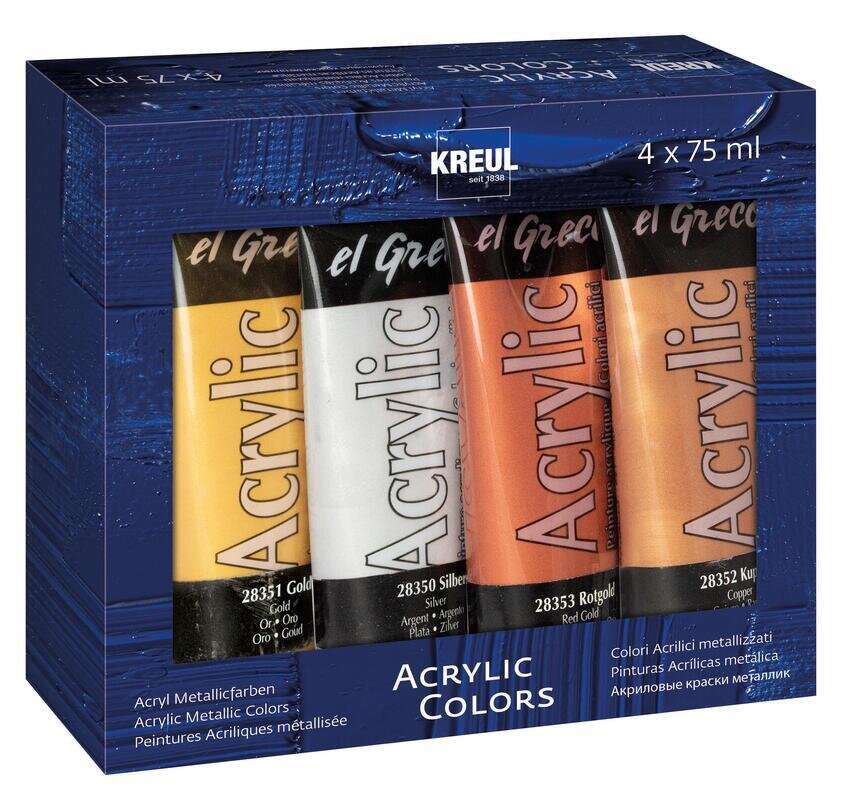 Sada Akrylová barva "EL GRECO", 4 barvy, metalické,75 ml v tubě, KREUL