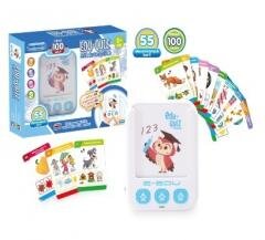 W zestawie:- czytnik kart wym. 10 x 7,5 cm- zestaw 55 kart- podstawka pod czytnik- instrukcjaFunkcje:- dwustronne karty posiadają proste zadania logiczne w formie pytania i 3 możliwych odpowiedzi- zabawa polega na włożeniu karty zadania w kieszeń czytnika, następnie zaznaczenie odpowiednim...