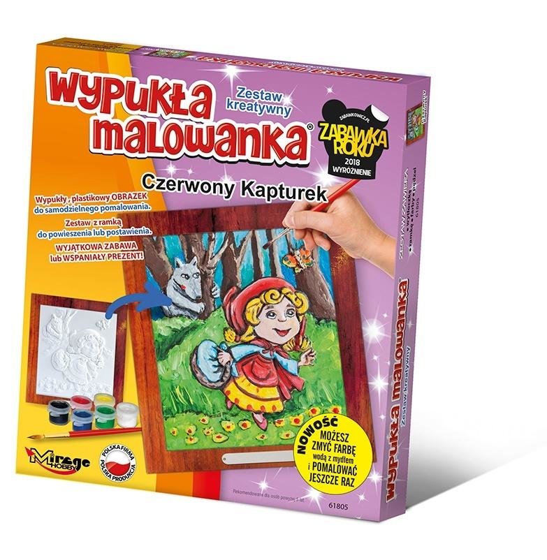 NOWOŚĆ! Zestawy Kreatywne do samodzielnego malowania zawierają: plastikowy wypukły obrazek + 6 szt. farbek akrylowych + pędzelek + ramkę do postawienia lub powieszenia + instrukcję mieszania kolorów. Rozmiar pudełka: 22,5 x 20 x 3 [cm], waga:150 gr lub 0,15 kg przeczytaj całość