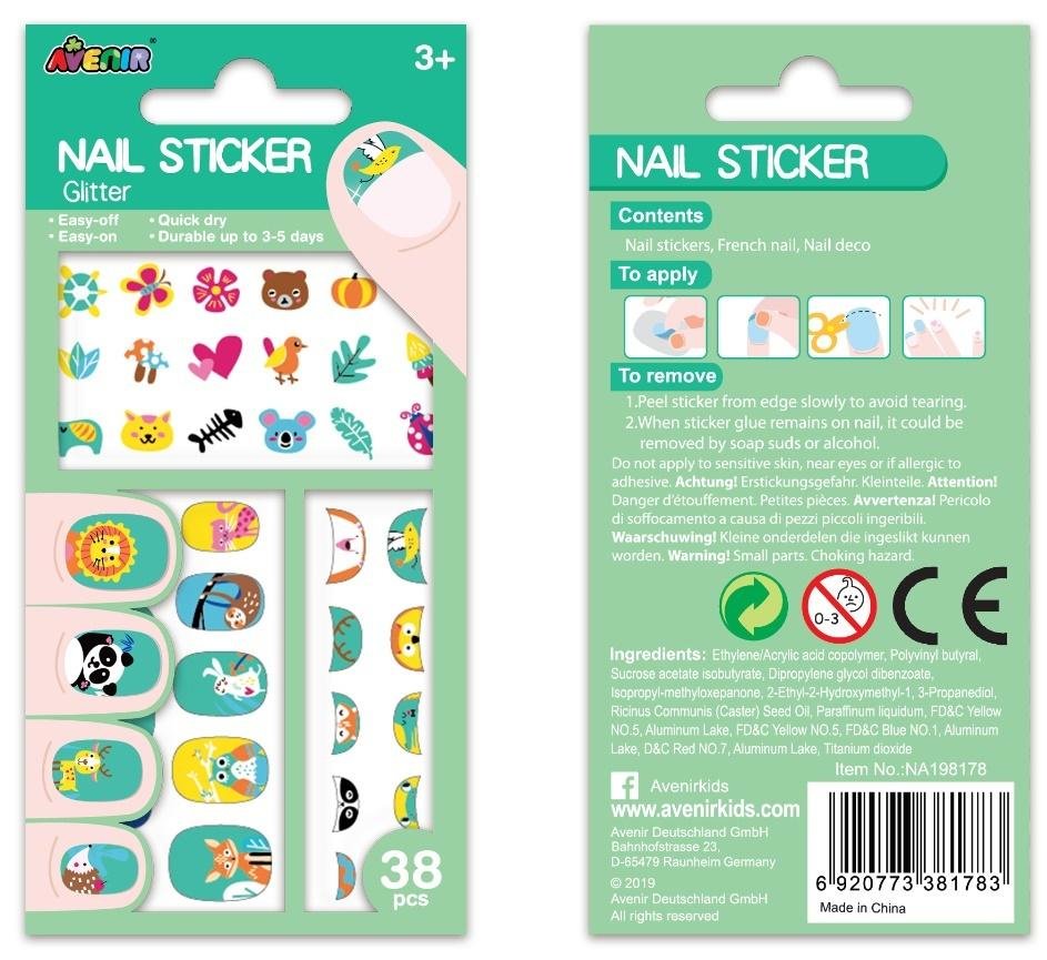 Zestaw ozdobnych naklejek na paznokcie od marki Avenir powstał specjalnie dla młodych dam. Będzie to wspaniały prezent dla każdej modnisi! Zestaw zawiera 38 tematycznych naklejek na paznokcie w różnych kształtach i rozmiarach. Naklejki są łatwe w aplikacji, utrzymują się 3-5 dni. Motyw brokatowych zwierzątek spodoba się dziewczynkom. Wiek: 3+. Wymiary opakowania: 13 x 6,5 cm