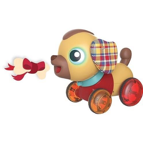 Interaktywny Piesek z Kością mówi po polsku i śpiewa 2 piosenki, w tym jedną po angielsku. Ma świecące oczy o zmieniającym się kolorze i sznureczek do ciągnięcia.Dzięki interaktywnym funkcjom reaguje na zachowanie dziecka podczas: dawania kości wyraża swoje zadowolenie, w czasie spaceru...