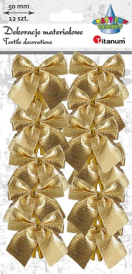 Gotowe kokardy, wykonane z materiału. Dla wygody każda z kokard wyposażona została w drucik ułatwiający jej dowiązanie do przedmiotu. Idealne do dekoracji choinek, gałązek, wianków, świeczników, prezentów. Szerokość: 50mm. 12 szt. przeczytaj całość