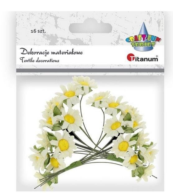 Materiałowe rumianki na druciku białe 16szt