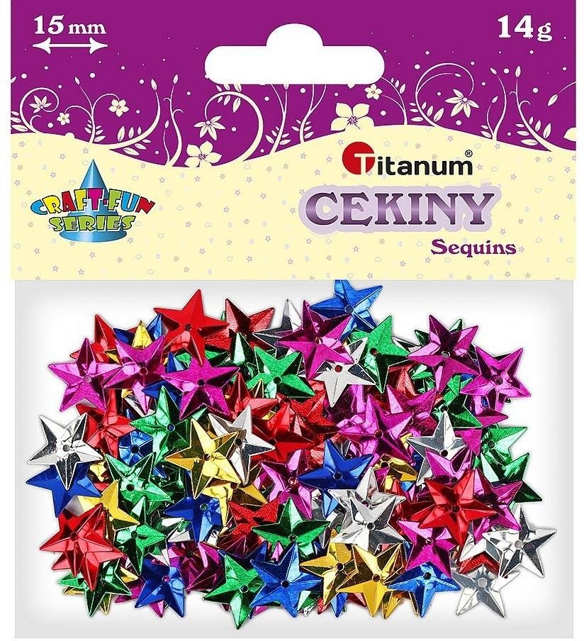 Cekiny w kształcie gwiazdek. Metalizowane. Średnica: 15 mm. Opakowanie: 14 g. przeczytaj całość