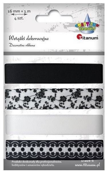 Wstążki rypsowe 4 kolory z nadrukiem 16mm 4x1m biała, czarna, kwiaty, koronka przeczytaj całość