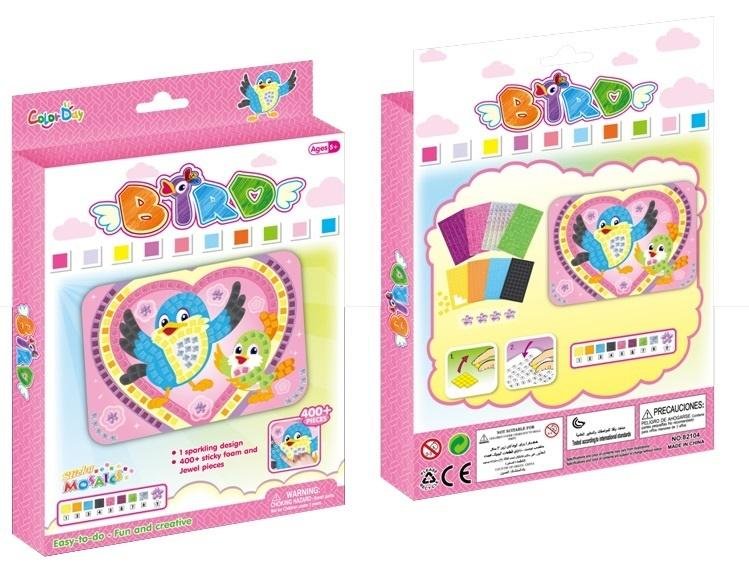 Wyklejanka po numerach - Ptaszek1 obrazek 15.5x21 cm, 400 elementów do wyklejania (kwadraciki i błyszczące dżety)wymiary opakowanie: 17.5x2.5x25.5 cm przeczytaj całość