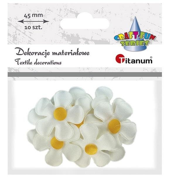Ozdoba materiałowa kwiatki 45mm biało-żólte 10szt