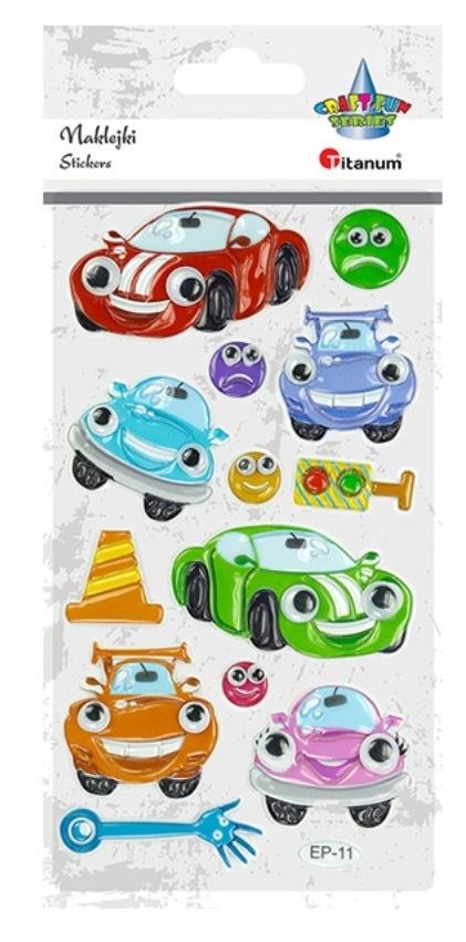 Naklejki wypukłe pojazdy z ruchomymi oczami 13szt