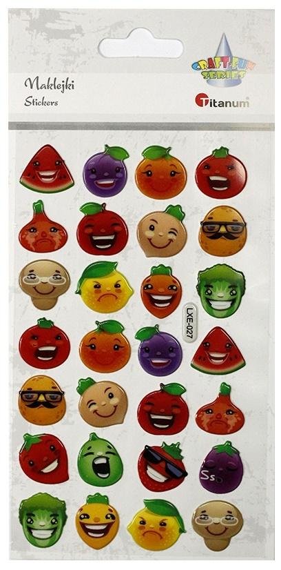 Naklejki wypukłe emotikony owoce, warzywa 28szt