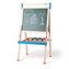 Dwustronna tablica marki Woody z regulowaną wysokością. Z jednej strony jest zielona powierzchnia do pisania kredą, z drugiej biała magnetyczna powierzchnia do pisania markerem. Nad tablicą w konstrukcję wbudowany jest drążek do zamocowania rolki papieru, którą można rozwijać i malować na powierzchni, jaką dają płyty tablicy. Tablica zawiera magnetyczne literki, białe kredy, marker, gąbkę oraz kubeczki na wodę i farby.