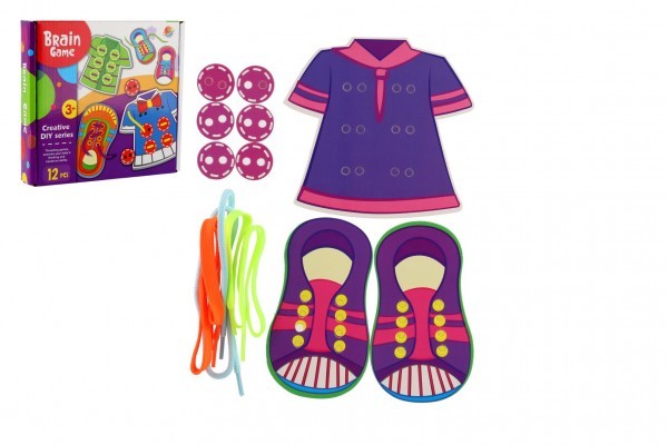 Potrénujte s dětmi vázání tkaniček a protahování šňůrek dírkami. Pomoci Vám může sada, která obsahuje šňůrky/tkaničky, botičky, košili/šaty a knoflíky z pevného kartonu. Rozměr krabičky: 18 x 16 x 3 cm Vhodné pro děti od 3 let przeczytaj całość