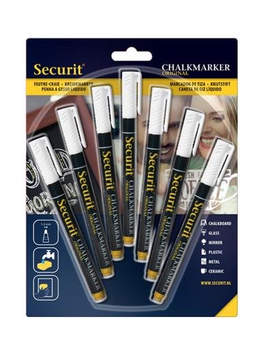 Křídový popisovač Securit SMA100 šířka hrotu 1-2mm, White, 7ks, blistr