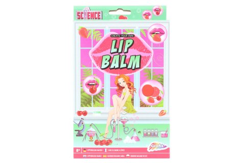 Sada na výrobu balzámů na rty obsahuje: 1 doźu s balzámovým základem, 1 prázdnou dózu, 2 lahvičky s vůní - třešeň, jahoda, lopatička. Rozměr balení cca 22,5 x 14 x 3 cm. Věk 8+ przeczytaj całość