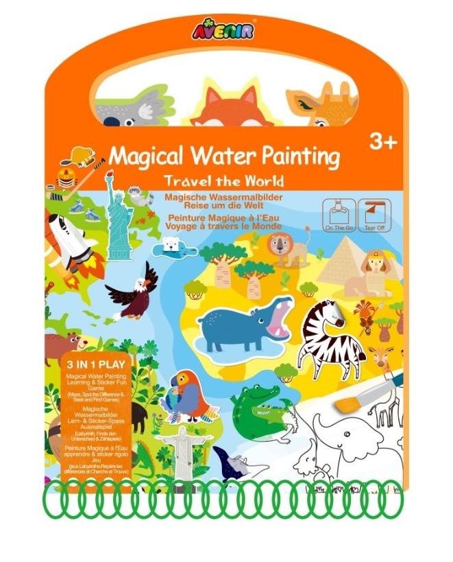 Magiczna książka do malowania wodą oparta na temacie odwiedzania miejsc nacałym świecie. Książeczka zawiera wiele zadań, takich jak labirynty, dostrzeganie różnic, szukanie i chowanie się. Zmocz pędzelek i przesuwaj po kartkach, aby odsłonić kolor. Wspaniały zestaw do ćwiczeń dla dzieci w... przeczytaj całość