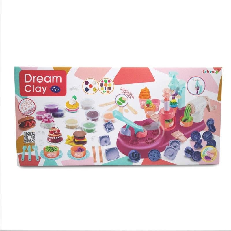 Zestaw posiada 8 plastelin w różnych kolorach- Zawiera również sztućce (2x talerze, x2 widelce, x2 łyżeczki, x2 noże)- x17 stempli w różnych wzorach- x2 miseczki do makaronu i lodów- x4 kubeczki do lodów (x2 pomarańczowe i x2 różowe)- x3 formy do robienia lodów, na których znajdują się 3 różne...