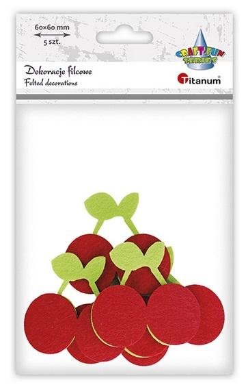 Filcowe czereśnie 3D 60x60mm czerwono-zielone 5szt. przeczytaj całość