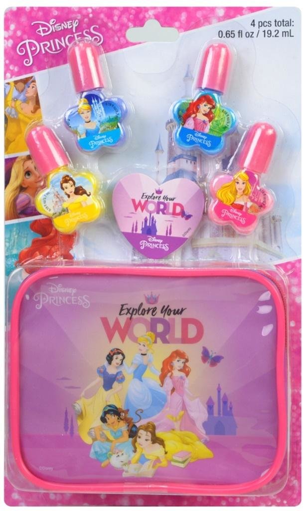 Zestwa lakierów dla dzieci do paznokci z kosmetyczką Princess Zestaw do paznokci , który zawiera 4 lakiery i bufor do paznokci, wewnątrz pięknej torebki z grafiką ulubionych księżniczek Disneya przeczytaj całość